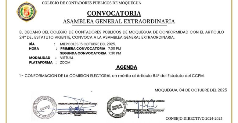 Estimados miembros del Colegio de Contadores Pรบblicos de Moquegua,