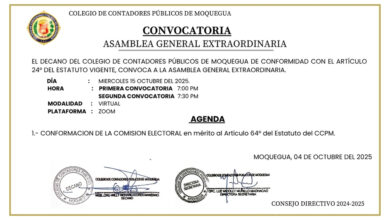 📣 𝗖𝗢𝗡𝗩𝗢𝗖𝗔𝗧𝗢𝗥𝗜𝗔 📣 ✨ 𝗔𝗦𝗔𝗠𝗕𝗟𝗘𝗔 𝗚𝗘𝗡𝗘𝗥𝗔𝗟 𝗘𝗫𝗧𝗥𝗔𝗢𝗥𝗗𝗜𝗡𝗔𝗥𝗜𝗔 ✨ Estimados miembros del Colegio de Contadores Públicos de Moquegua, El Decano tiene…